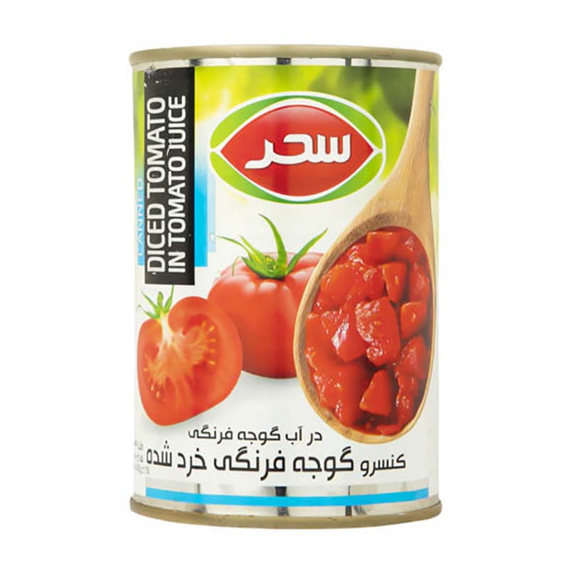 كنسرو گوجه خرد شده در آب گوجه فرنگي قوطي 400 گرمي سحر